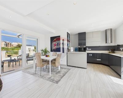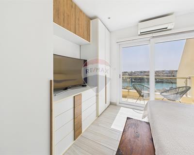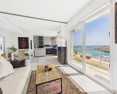 MARSASCALA – PENTHOUSE – Located in the highly desirable Ta' Monita area, this exceptional penthouse is finished to the highest standards and is being offered fully furnished, ready for immediate occupancy. The property boasts an abundance of natural light and is remarkably airy, with panoramic sea views from every room. It comprises a spacious Open Plan Kitchen/Living/Dining area, complemented by both a front and rear terrace, each offering stunning, unobstructed sea vistas. The penthouse features 2 Bedrooms, a Main Bathroom, an En-suite, and full ownership of the Roof and Airspace. Additional benefits include the option to rent an interconnected garage. The property is also equipped with modern amenities including a water softener, solar heater, and a pellet stove. This property presents an excellent investment opportunity. For an immediate viewing, please contact the agent.